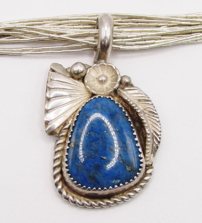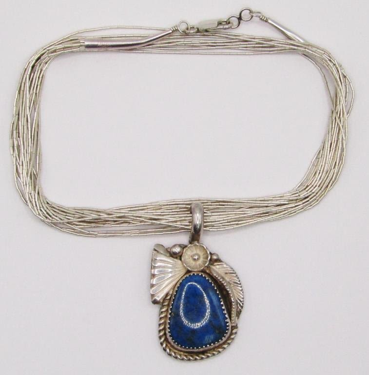 BLUE CENTER STONE-COMES WITH 20 INCH LIQUID STERLING MULTI STRANDED NECKLACE-TOTAL 14 DWT
