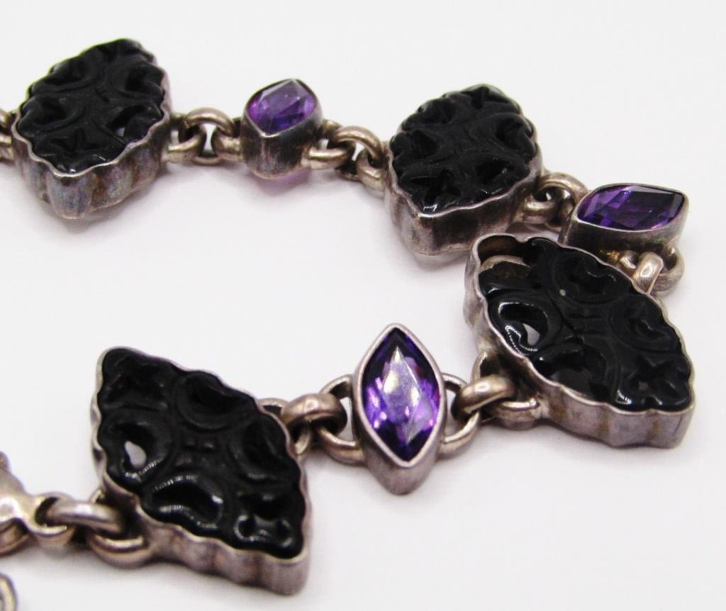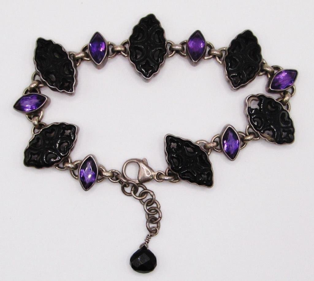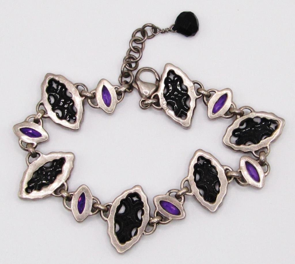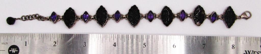 LUCITE AND VIOLET STONES-MEASURES 8 INCHES-TOTAL 14 DWT