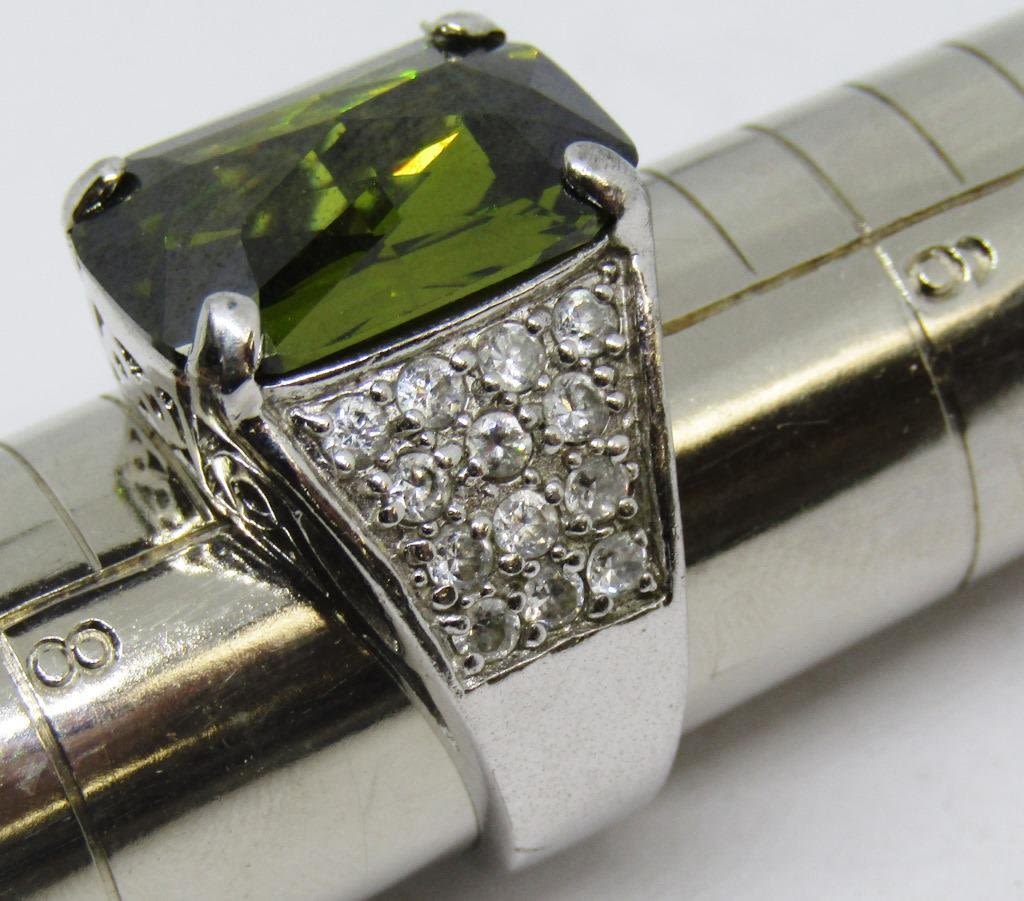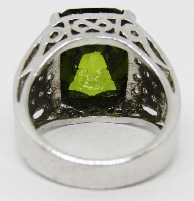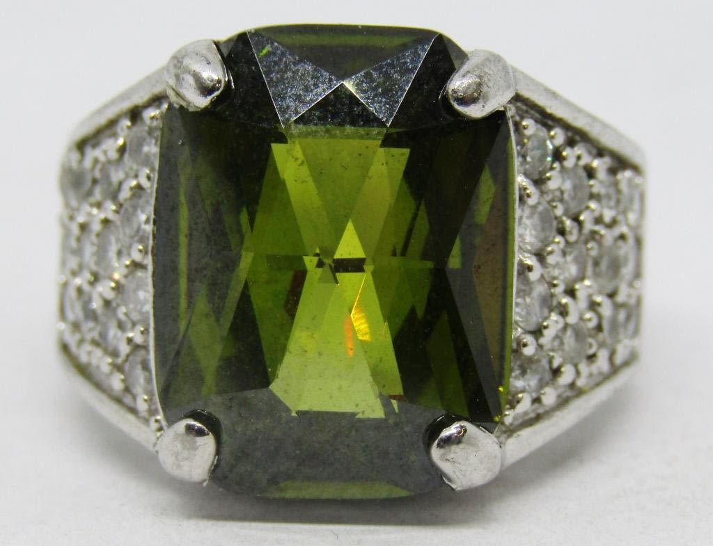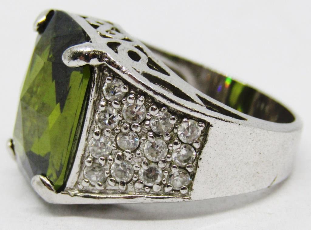 GREEN CENTER STONE-CLEAR STONE ACCENTS-RING SIZE 7.5-TOTAL 7 DWT