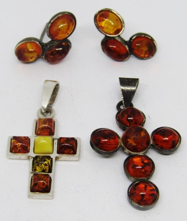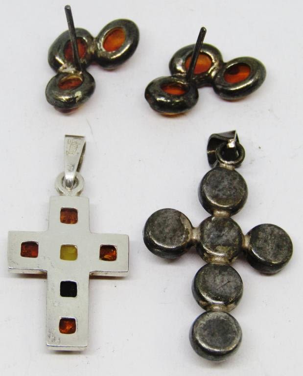 (2)CROSS PENDANTS & (1)PAIR OF PIERCED EARRINGS-TOTAL 4 DWT