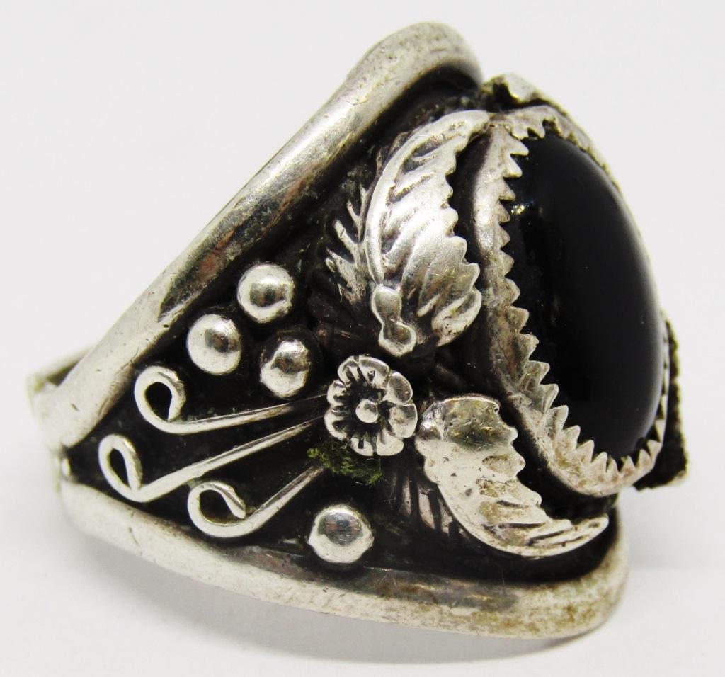 WITH BLACK ONYX CENTER STONE-RING SIZE 10-TOTAL 9 DWT