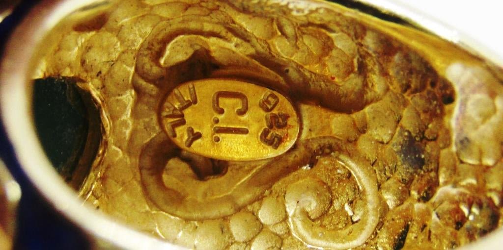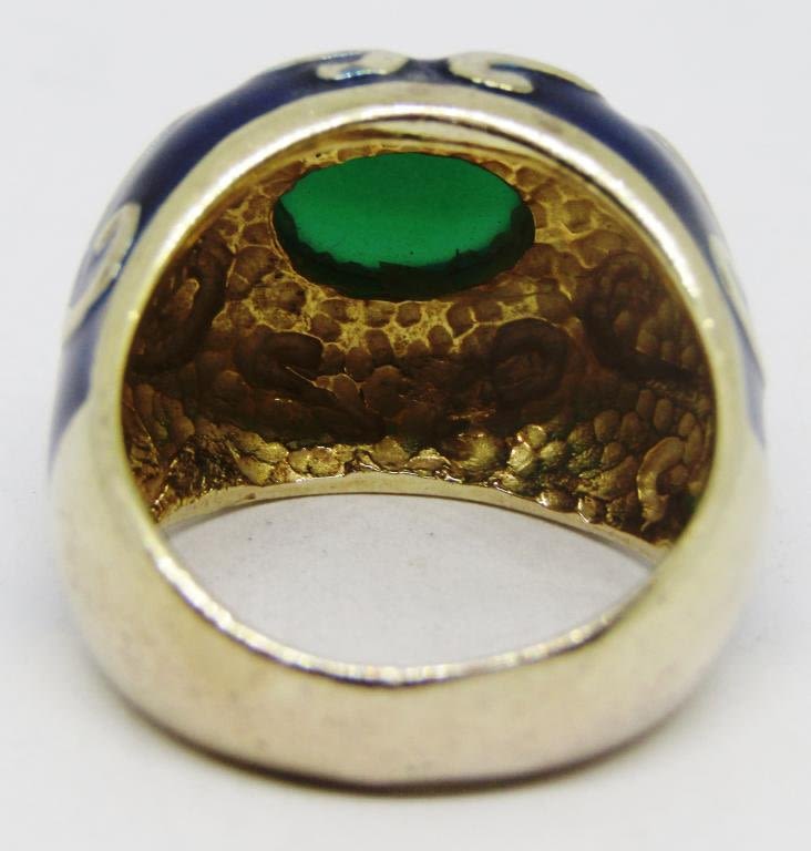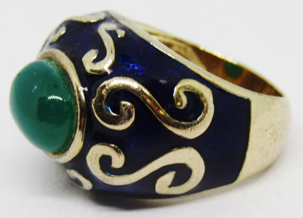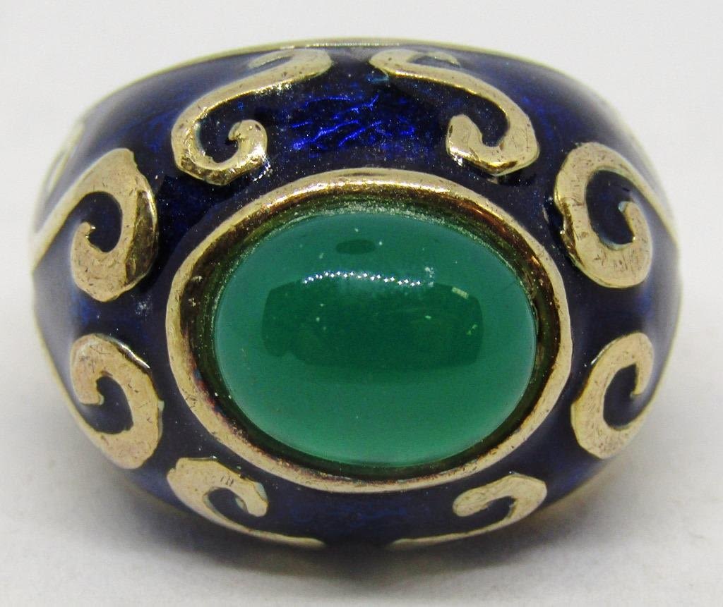 STONES-NAVY BLUE ENAMEL-GOLD TONED-RING SIZE 7-TOTAL 6 DWT