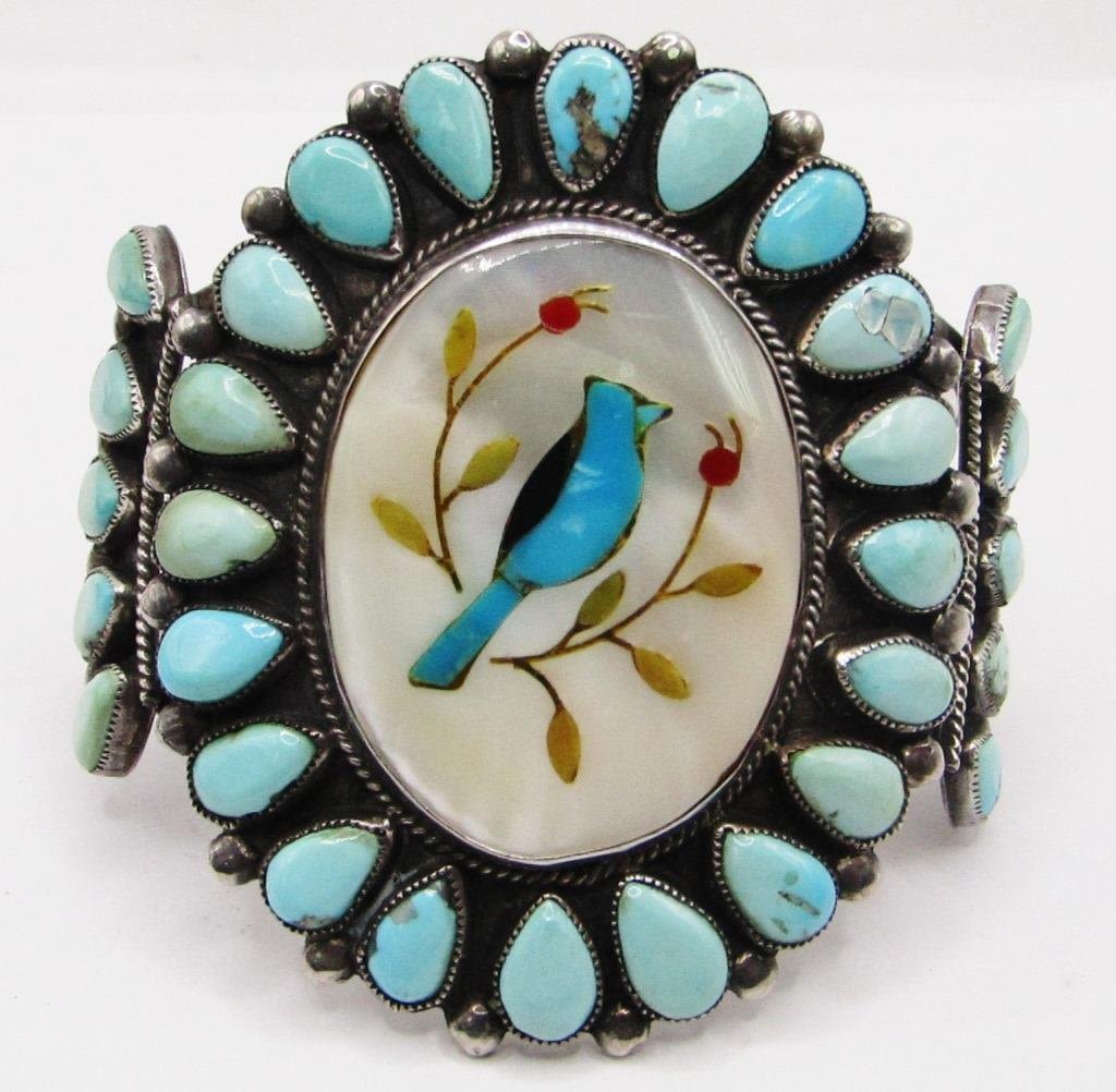 INLAY BIRD DESIGN-LOADED WITH TURQUOISE STONES-TOTAL 37 DWT