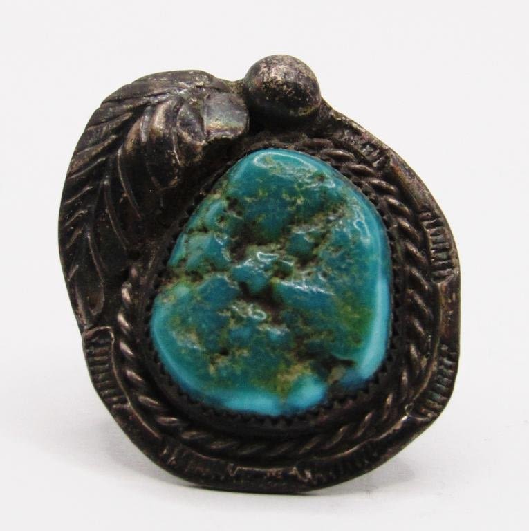 TURQUOISE CENTER STONE-RING SIZE 6-TOTAL 5 DWT