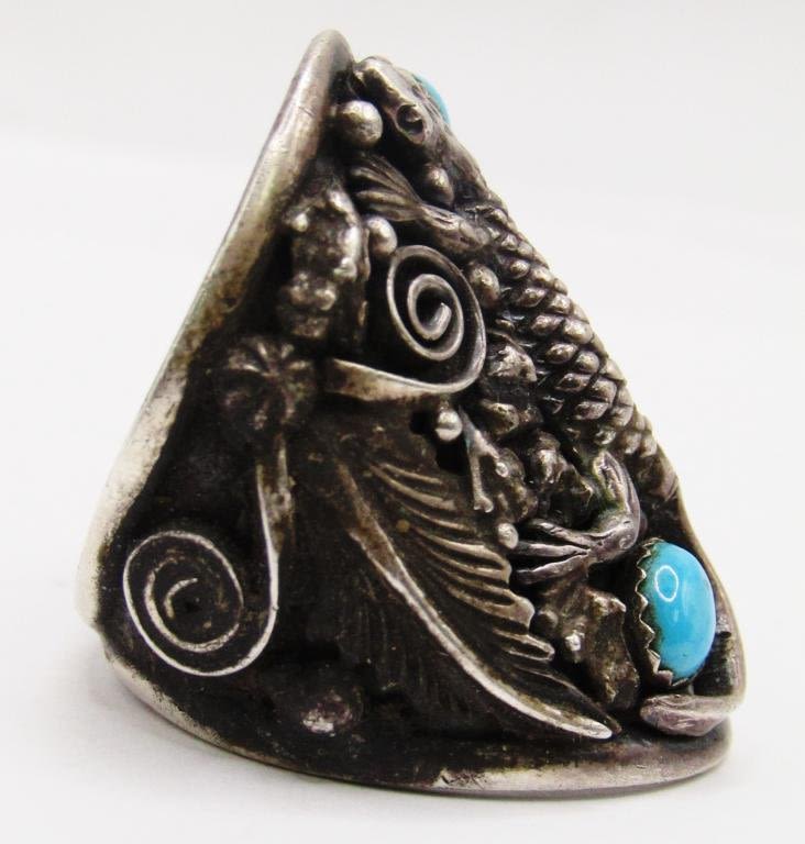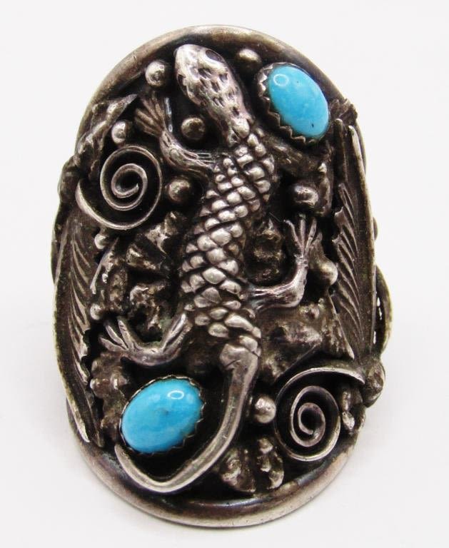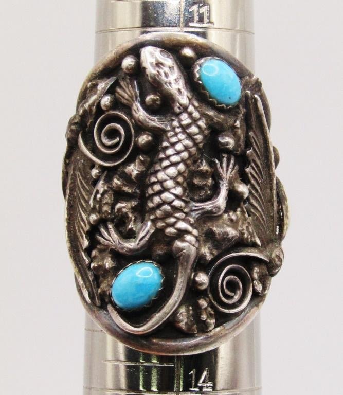 LIZARD RING WITH TURQUOISE STONES-RING SIZE 12-TOTAL 15 DWT