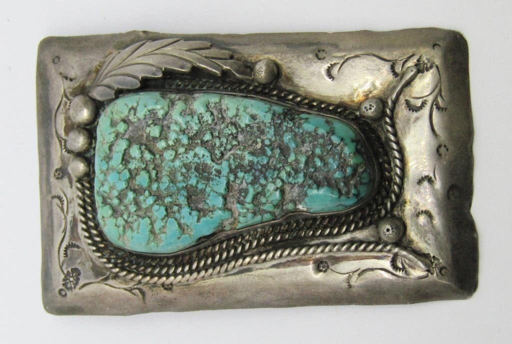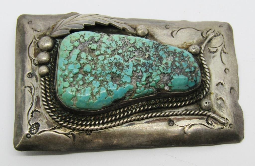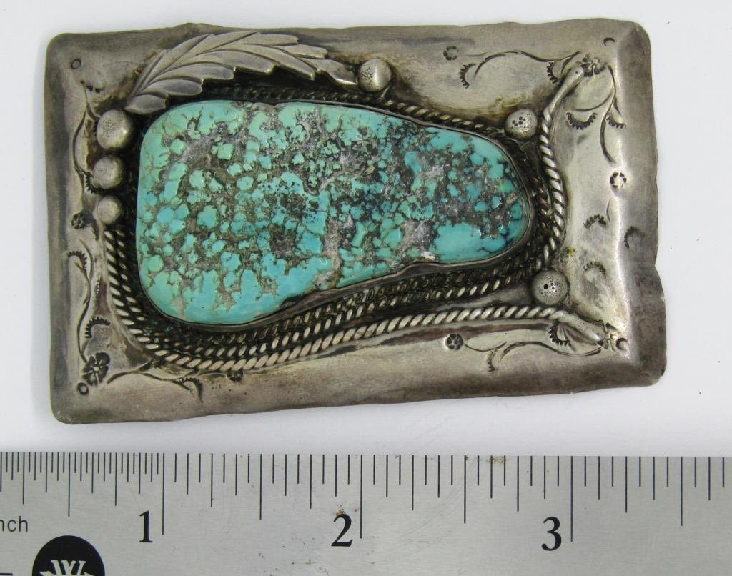 PENDANT WITH MASSIVE TURQUOISE STONE-MEASURES 3 INCHES LONG BY JUST UNDER 2 INCHES WIDE-TOTAL 50.6 DWT