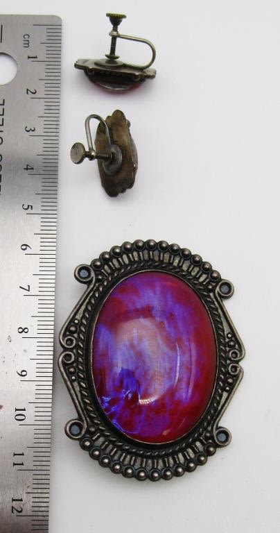 SHIMMER LUCITE CENTER WITH MATCHING PAIR OF TWIST BACK EARRINGS-TOTAL 27.3 DWT