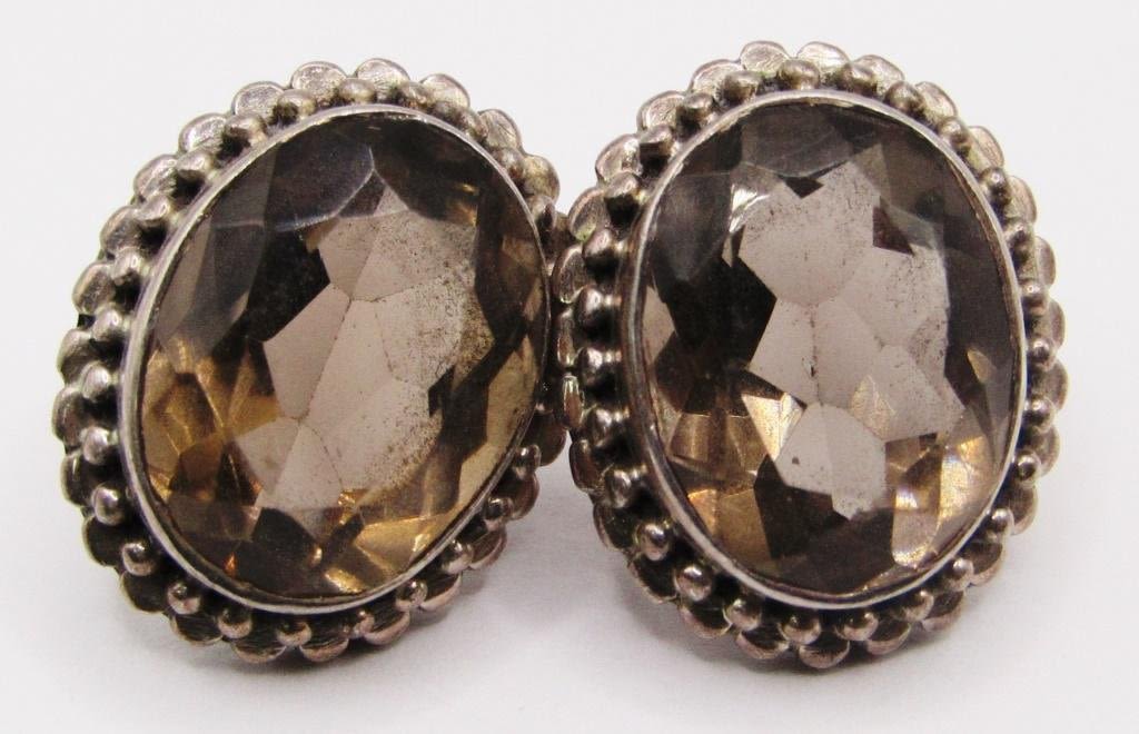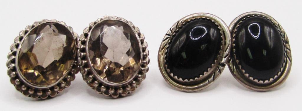 (1)WITH BROWN CENTER STONES & (1)WITH BLACK CENTER STONE-TOTAL 10 DWT