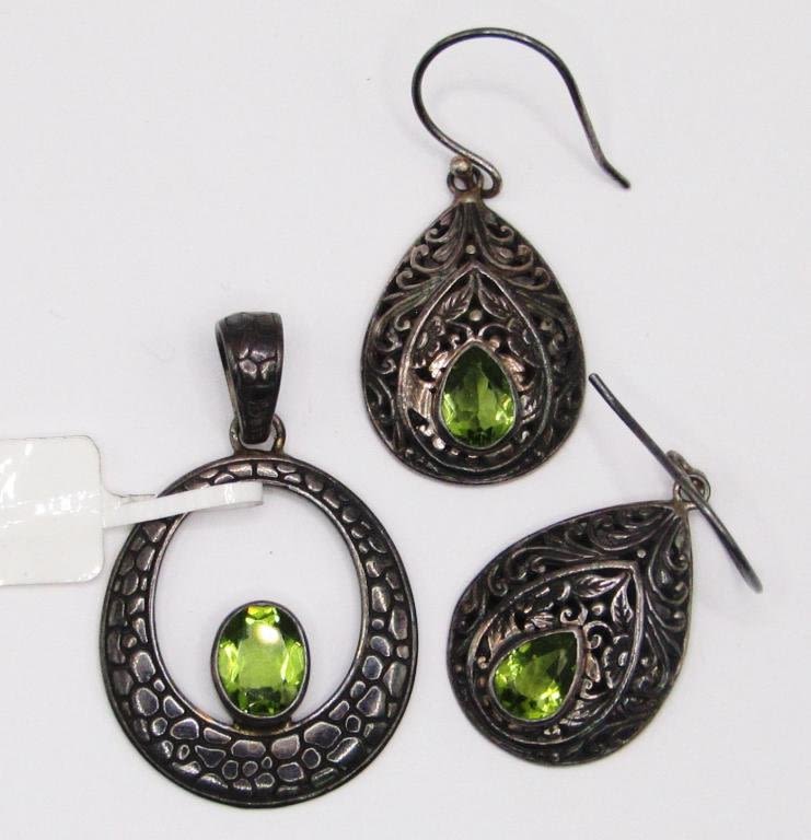 WITH MATCHING PAIR OF PIERCED DANGLY EARRINGS-TOTAL 7 DWT