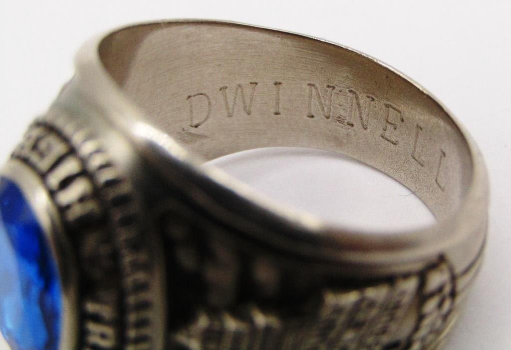 WITH NAVY BLUE CENTER STONE-RING SIZE 7-TOTAL 6 DWT