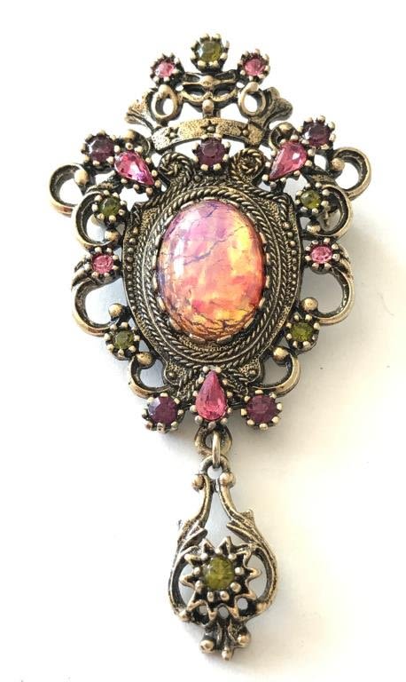 CROWN FAUX OPAL BOOK PIECE BROOCH