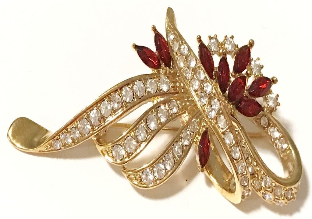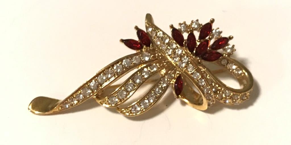 STUNNING RED RHINESTONE BROOCH- SHINES!