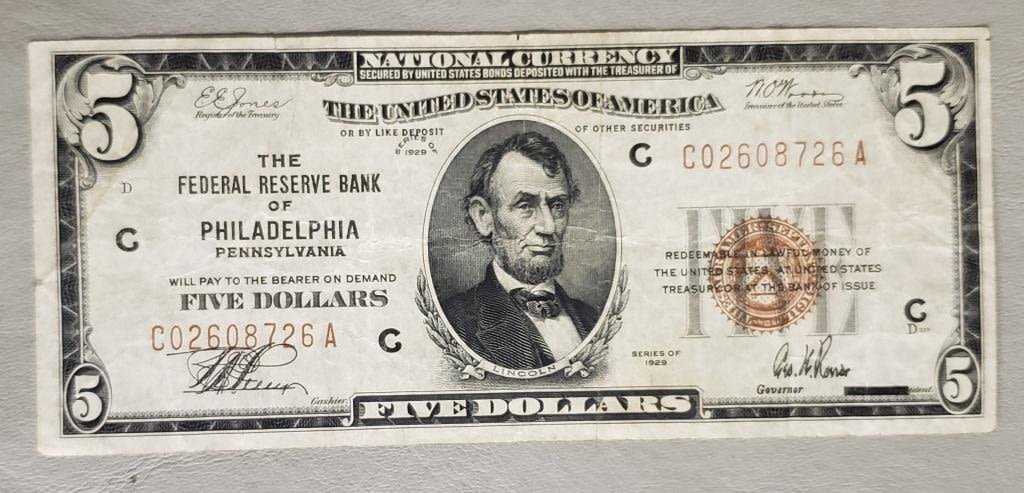 1929 $5 NATIONAL CURRENCY PHILADELPHIA PA