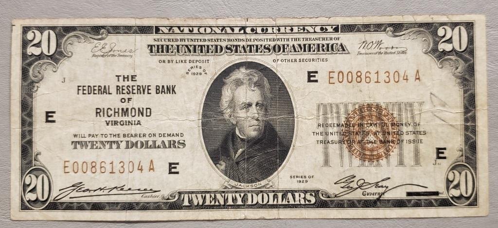 1929 $20 NATIONAL CURRENCY RICHMOND VA