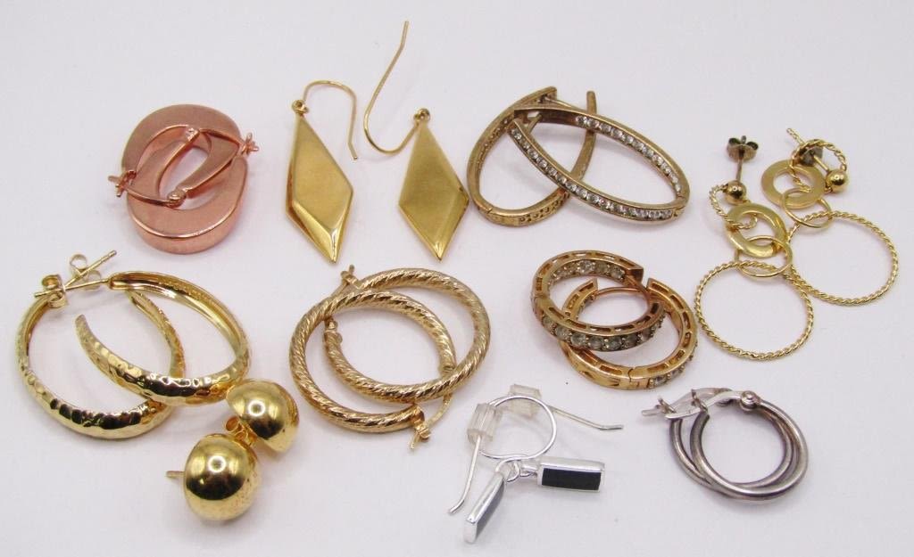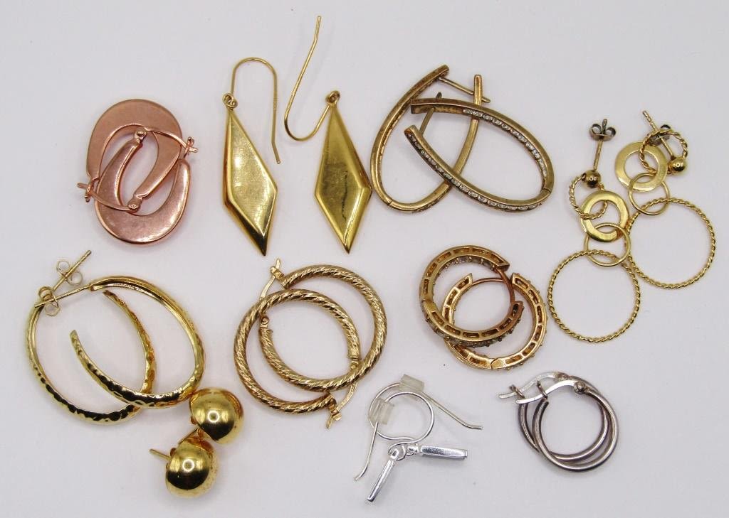 PIERCED EARRING LOT – MOSTLY GOLD TONED MODERN STYLE ( 22 DWT)