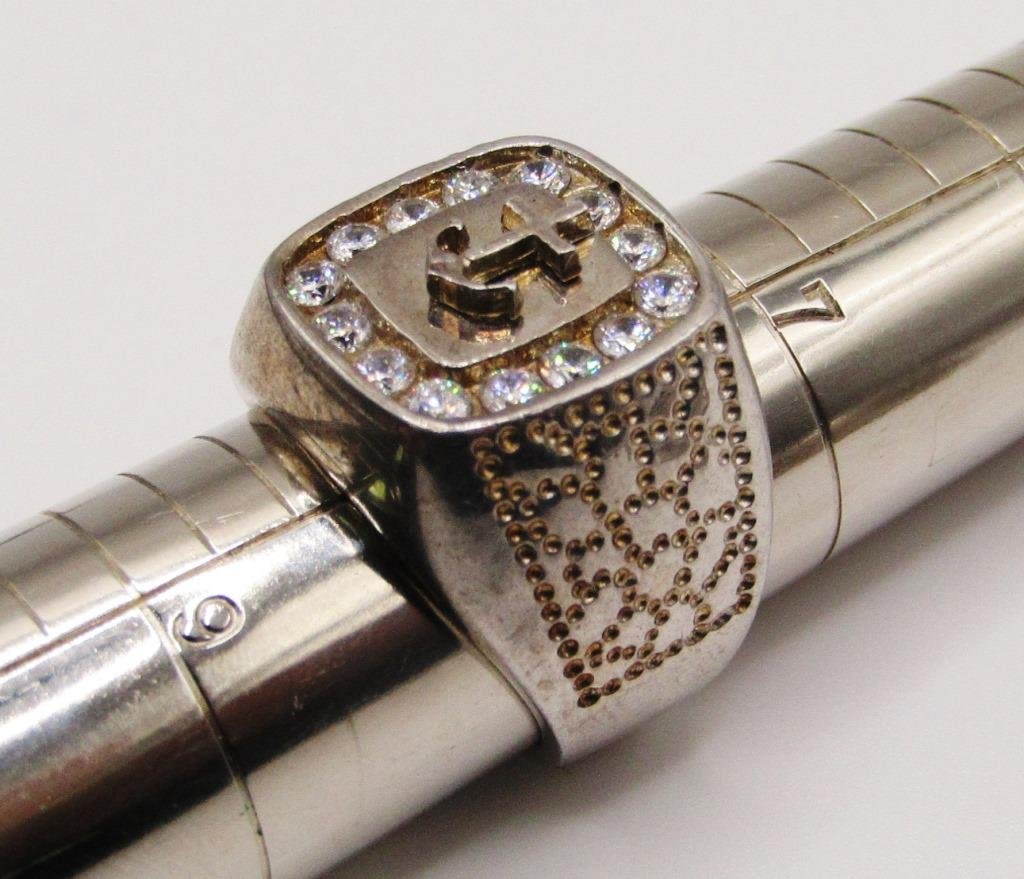 (1)ANCHOR (1)CROSS-CLEAR STONE ACCENTS-RING SIZES 8-TOTAL 20.8 DWT