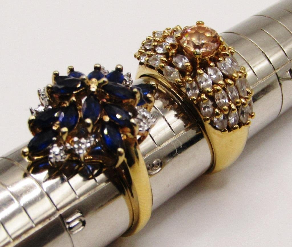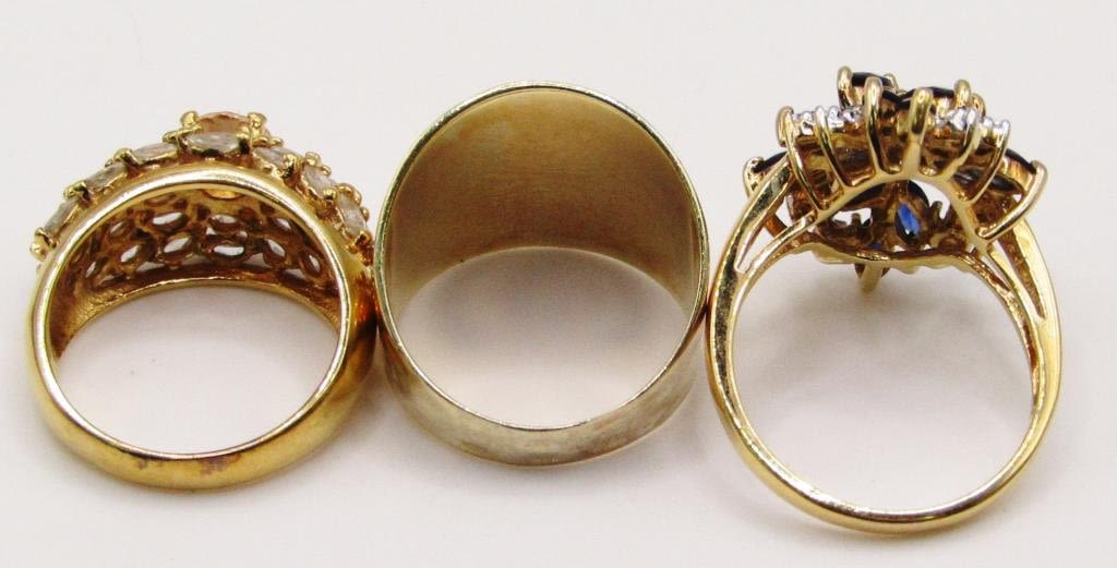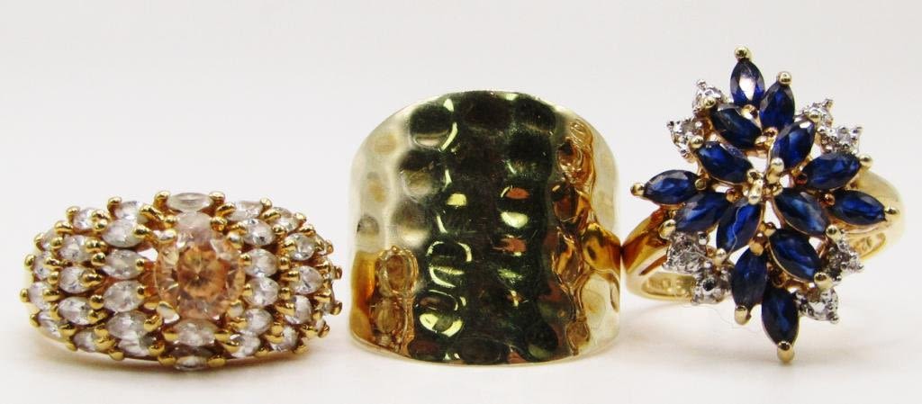 (2)WITH MULTI COLORED STONES (1)WITH HAMMERED DESIGN-TOTAL 7-9-TOTAL 15.1 DWT
