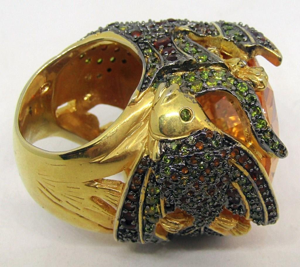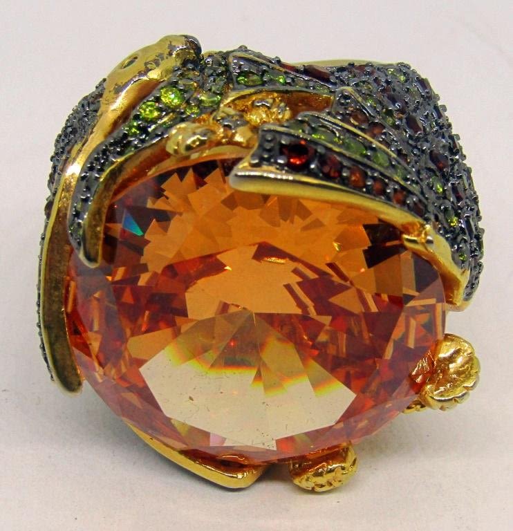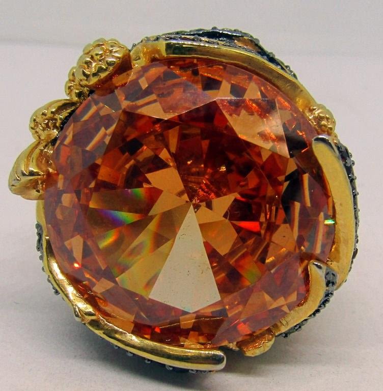ORANGE CENTER STONE-GORGEOUS RHINESTONE DESIGN AROUND THE BORDER-RING SIZE 6-TOTAL 42.1 DWT