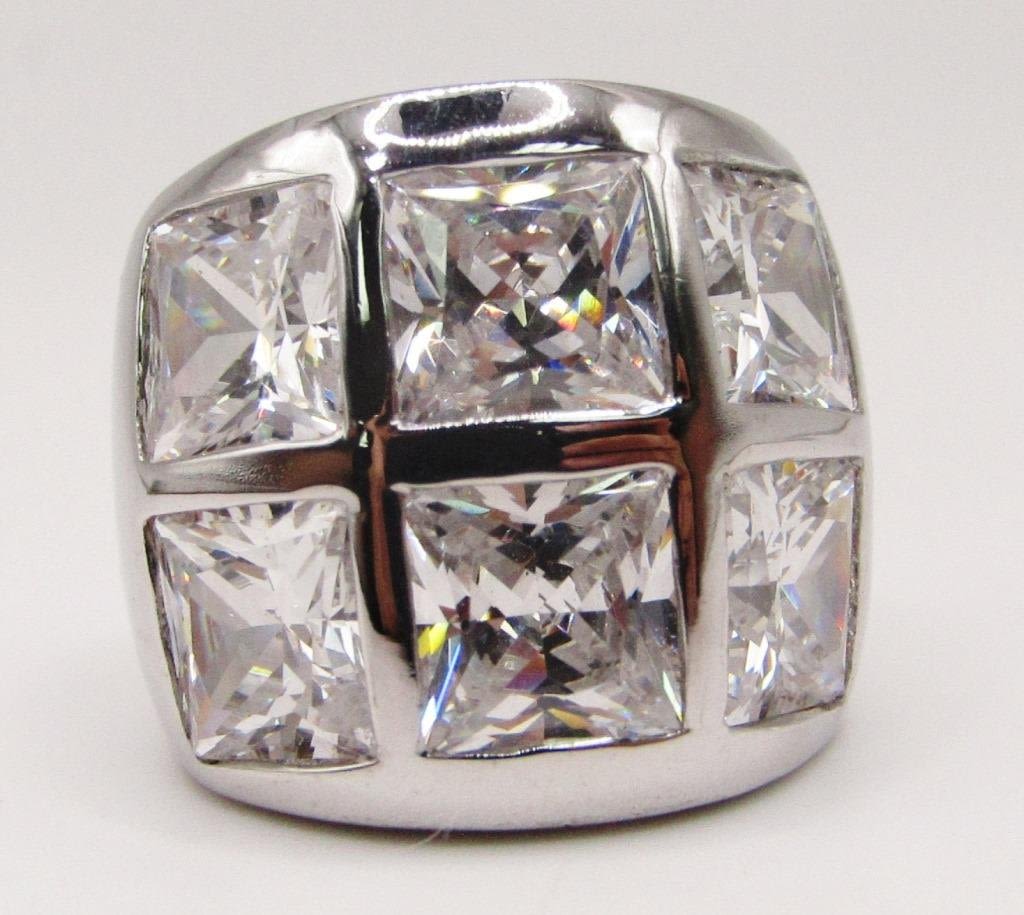 SQUARE STONE CLUSTER-RING SIZE 7-TOTAL 16.9 DWT