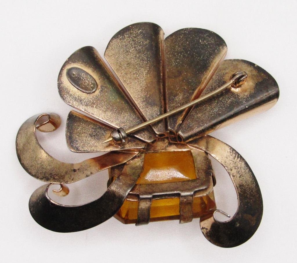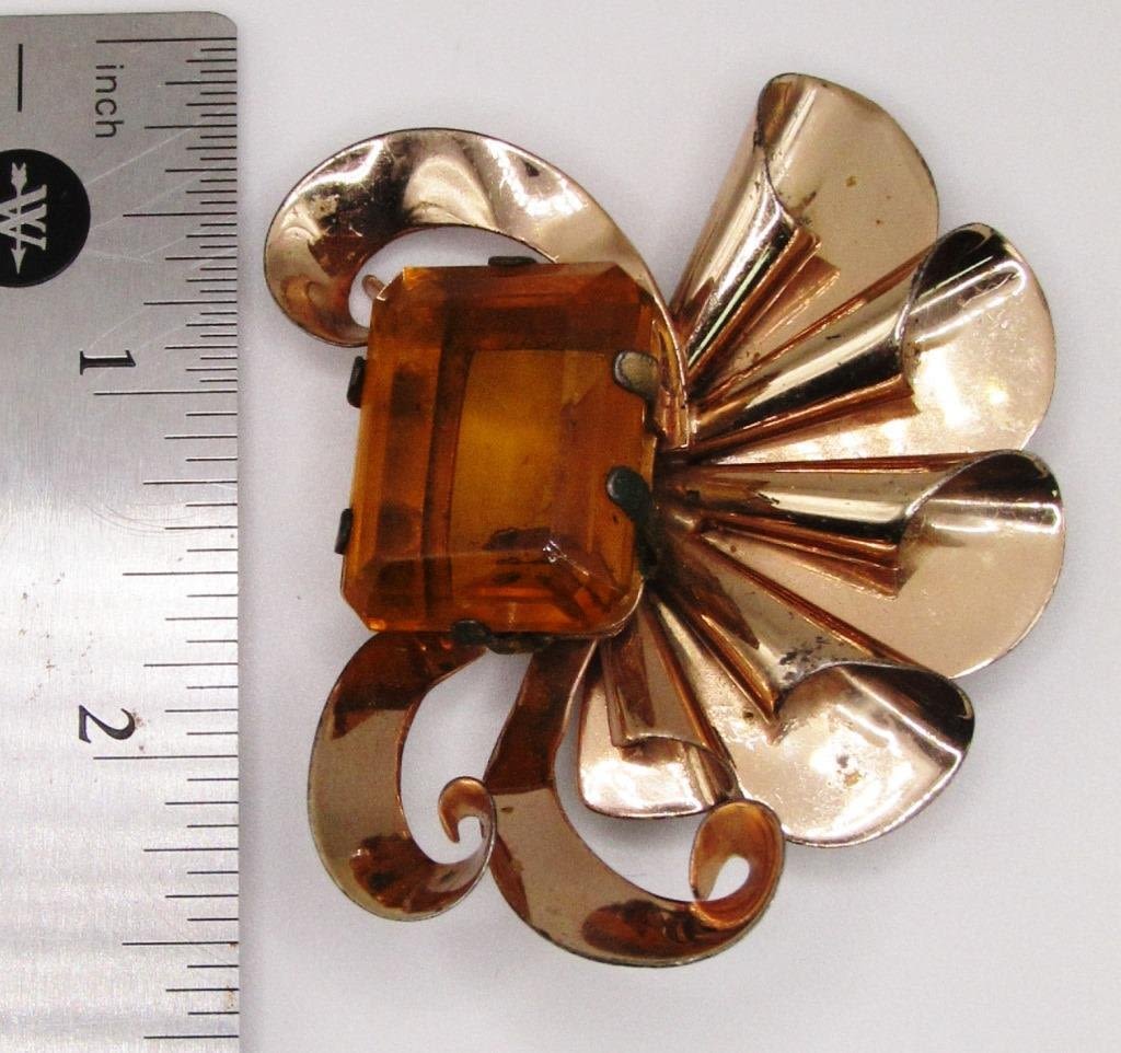 LARGE BURNT ORANGE RETANGLE CENTER STONE-TOTAL 9.5 DWT