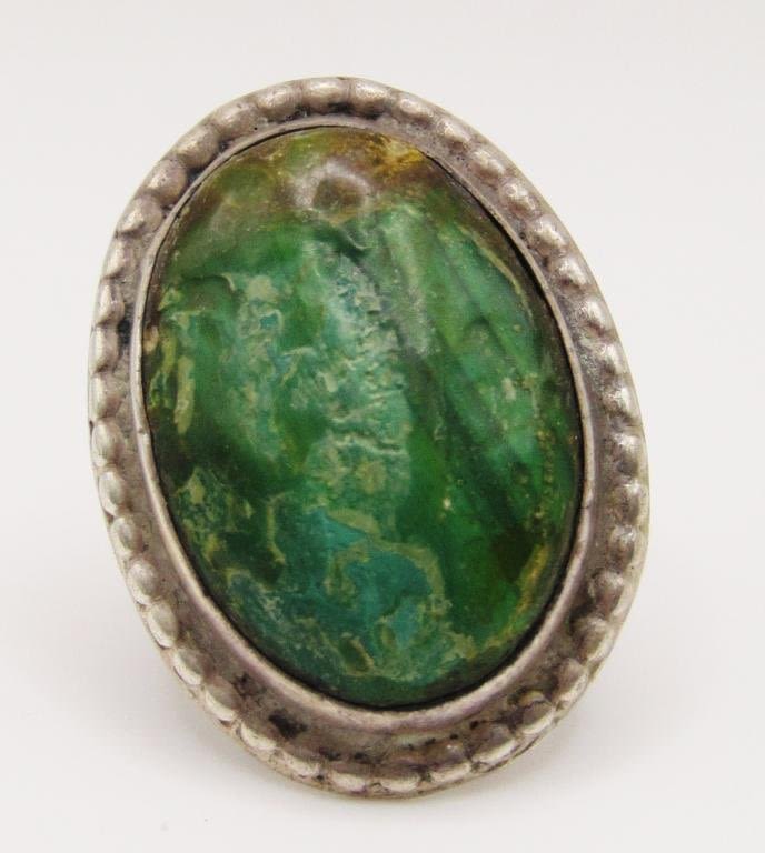GREEN CENTER STONE-RING SIZE 5-TOTAL 9.5 DWT