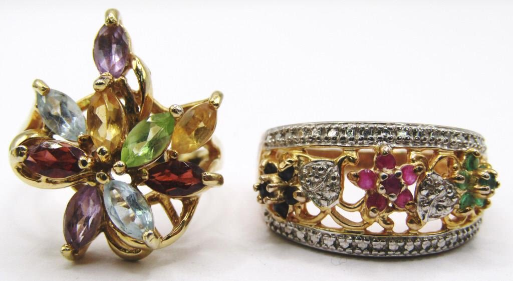 COLORED STONES-RING SIZES 8.5 & 9-TOTAL 6.9 DWT