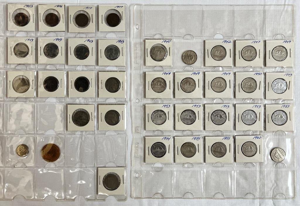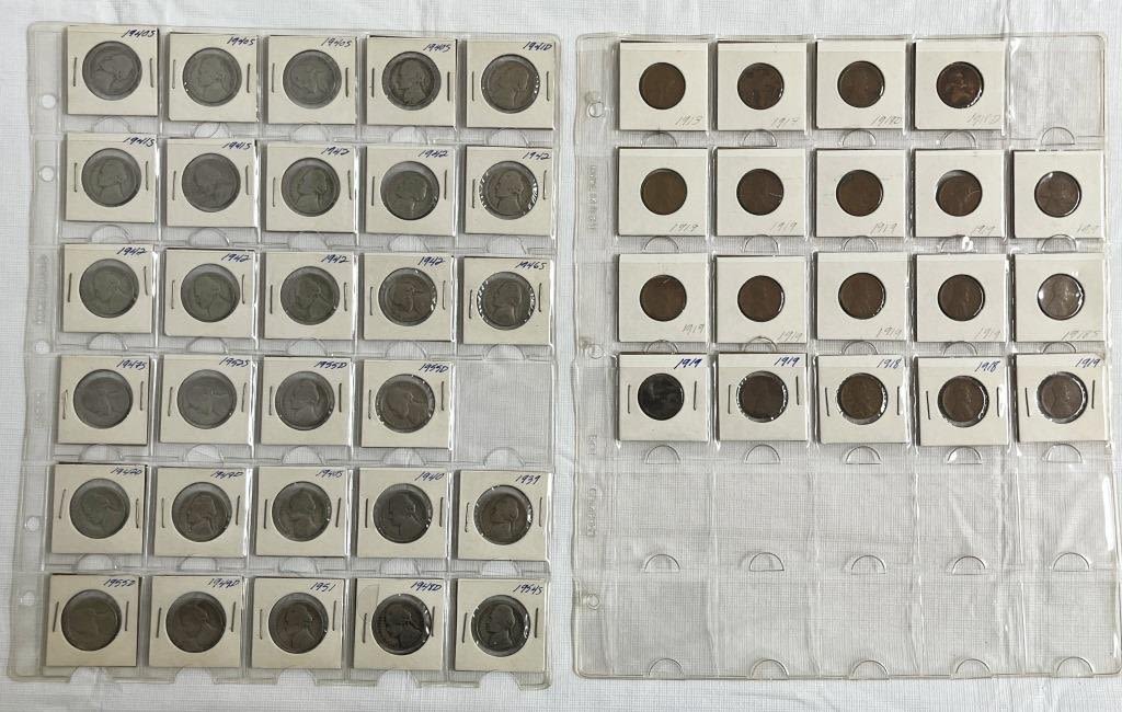 (35) WHEAT CENTS, (9) INDIAN CENTS, (6) STEEL CENTS, (6) BUFFALO NICKELS, (29) JEFFERSON NICKELS, (13) U.S. DOLLAR COINS MIX, (8) KENNEDY 50c, (22) FOREIGN COINS plus