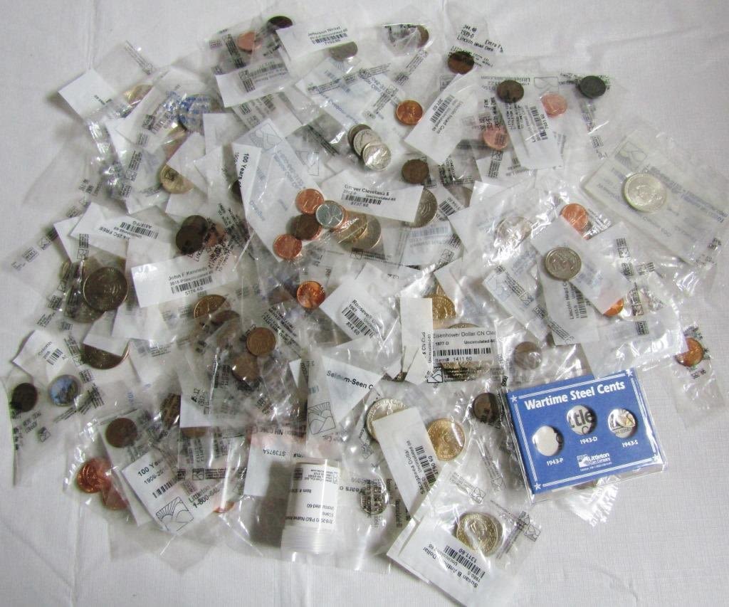 MANY EARLY DATE INDIAN CENTS, "V" NICKELS, BUFFLO NICKELS, WHEAT CENTS, SOME SILVER COINS, PROOF & UNC COINS – NICE COLLECTORS TREASURE HUNT! OVER $35 FACE VALUE