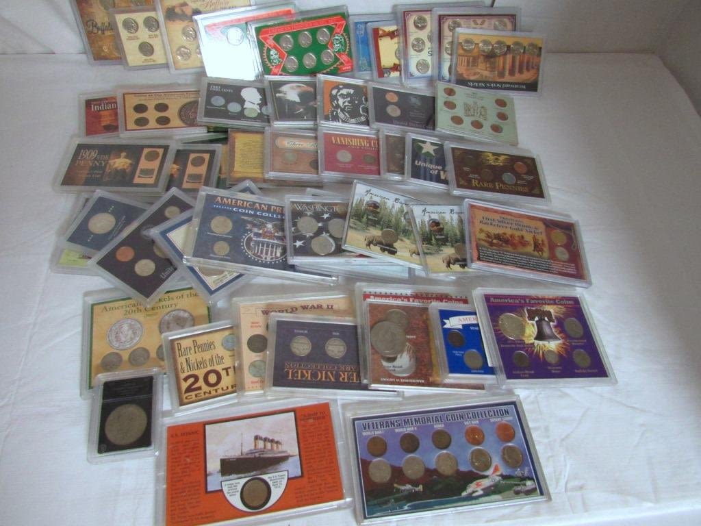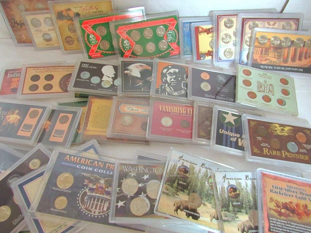 TRIBUTE SETS with SILVER COINS, PROOF & UNC COINS, WASHINGTON QTRS, KENNEDY HALF DOLLARS, SBA, SACAGAWEA, IKE, WHEAT CENTS, LINCOLN CENTS, JEFFERSON NICKELS, STEEL CENTS, INDIAN CENTS BUFFALO NICKEL "V" NICKELS WAR NICKELS