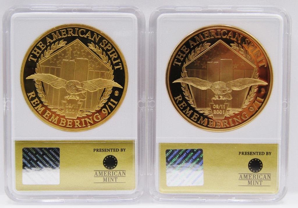 AMERICAN SPIRIT ANNIVERSARY COINS; LAYERED IN 24K GOLD; PROOFS; ISSUED 2016.
