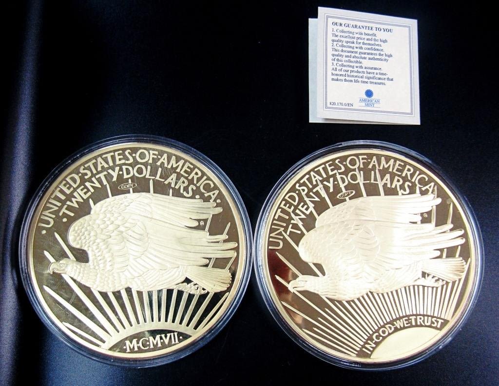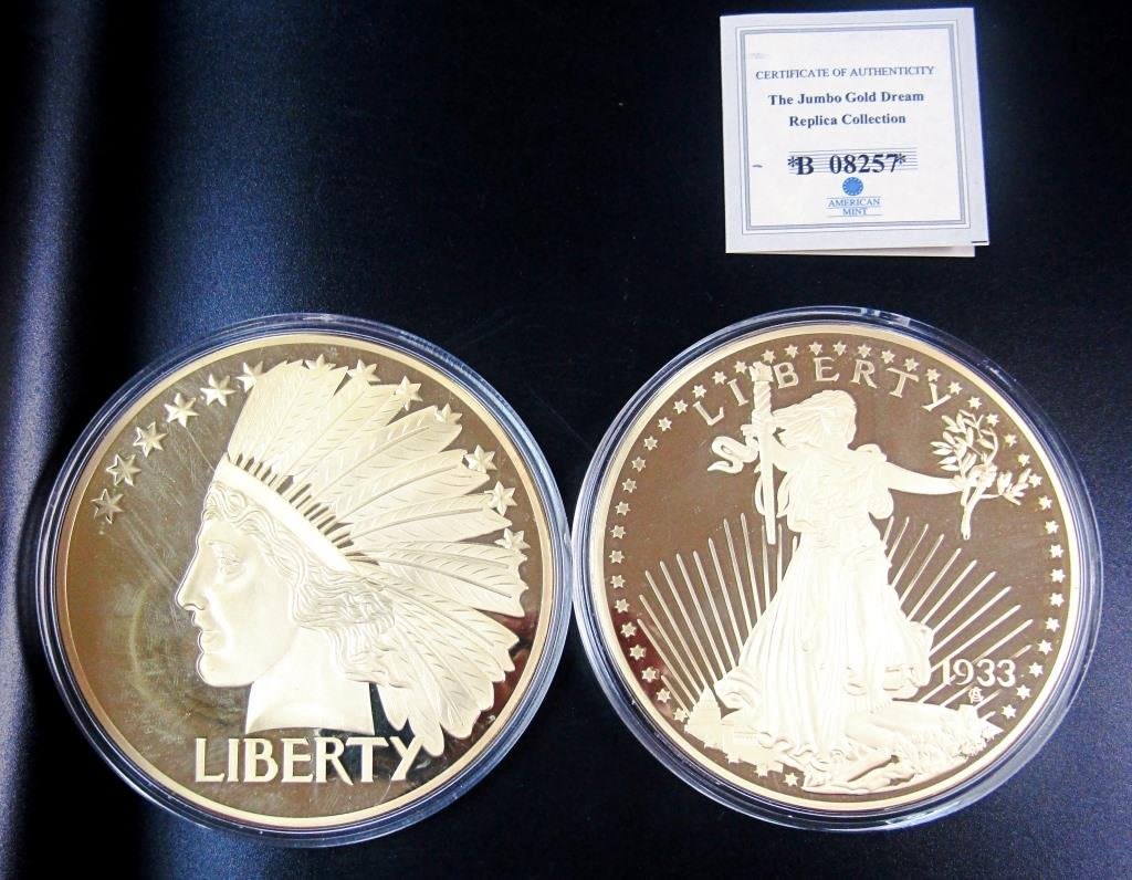 1933 GOLD DOUBLE EAGLE WALKING LIBERTY WITH COA; INDIAN HEAD DOUBLE EAGLE LIBERTY TWENTY DOLLAR (BOTH COPIES!)