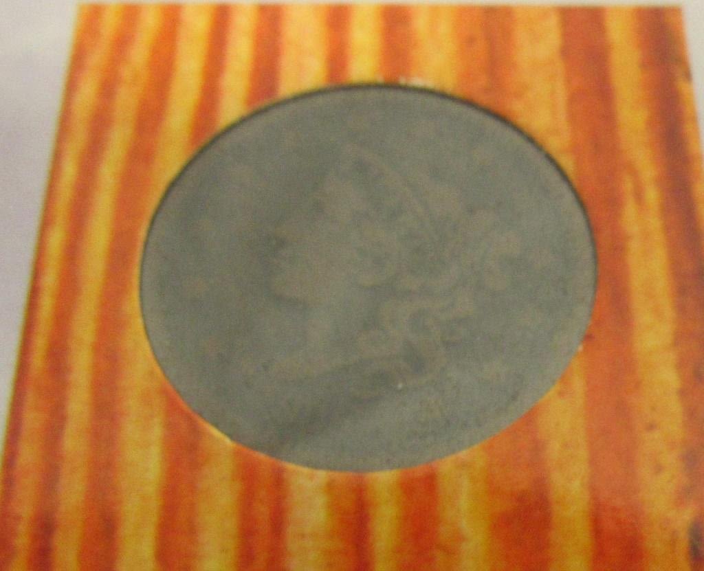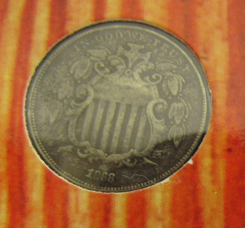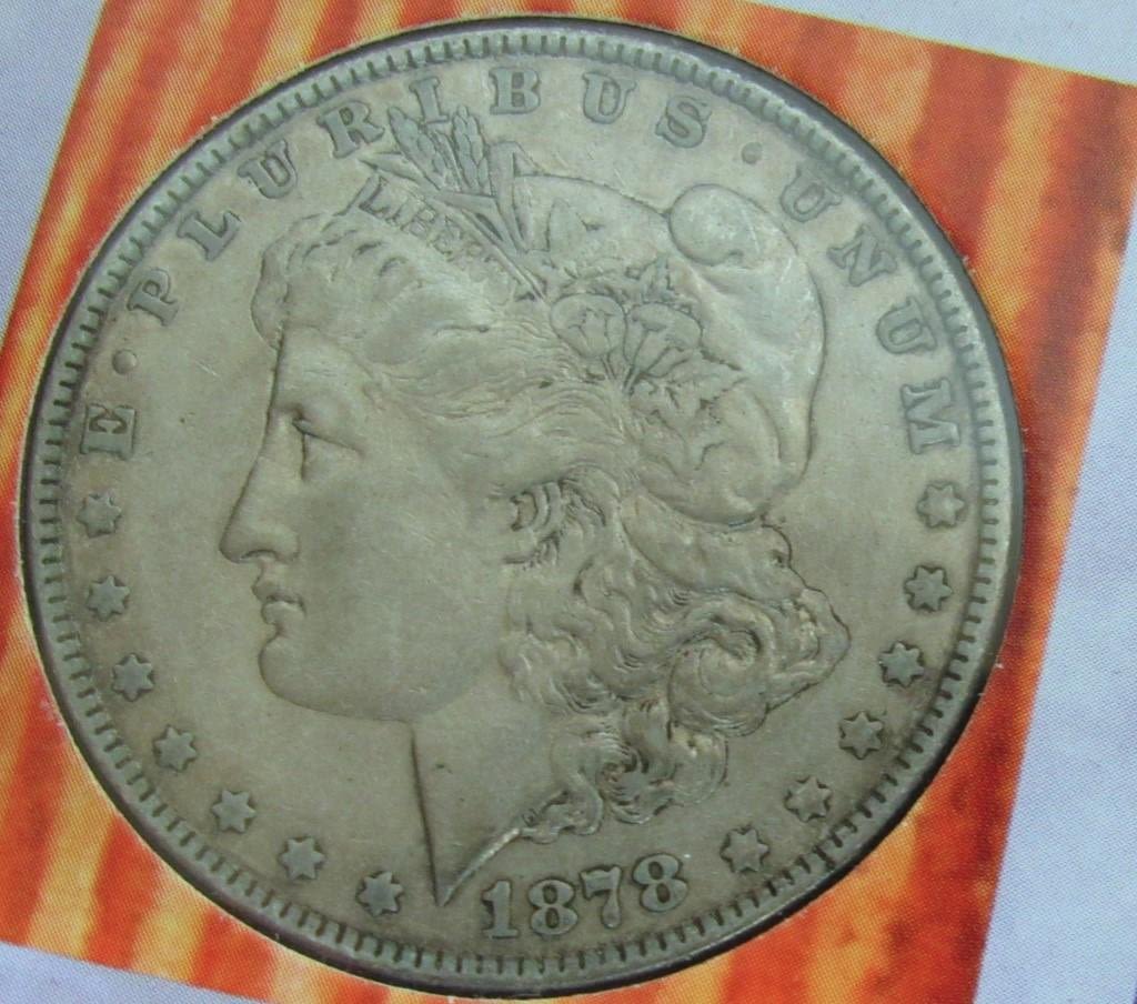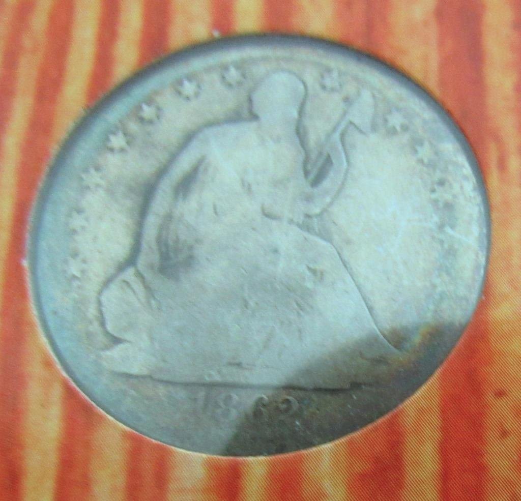 LIBERTY HALF DOLLAR, SEATED LIBERTY QUARTER, HALF CENT, 1878 MORGAN DOLLAR, SHIELD TYPE NICKEL, THREE-CENT PIECE, SEATED LIBERTY HALF DIME in UNITED STATES COMMEMORATIVE GALLERY INFO PANELS & WOOD COVER (missing screws to