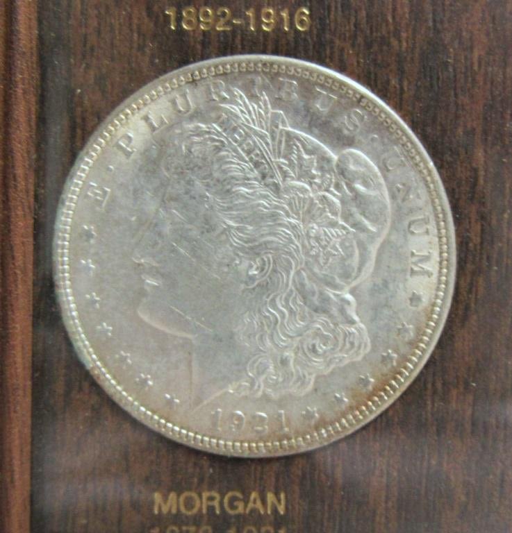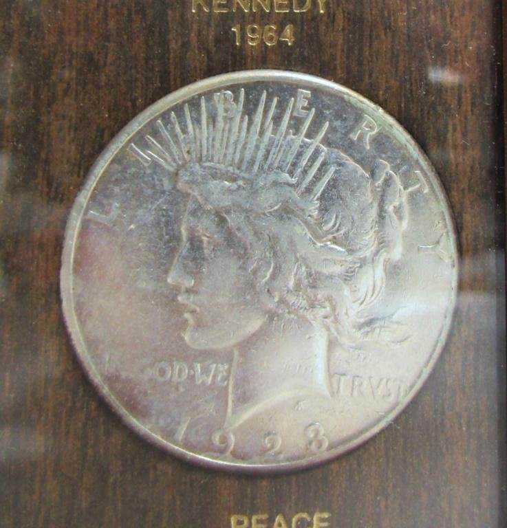 in FRAME with MORGAN SILVER DOLLAR & PEACE SILVER DOLLAR along with OTHER SILVER U.S. COINS