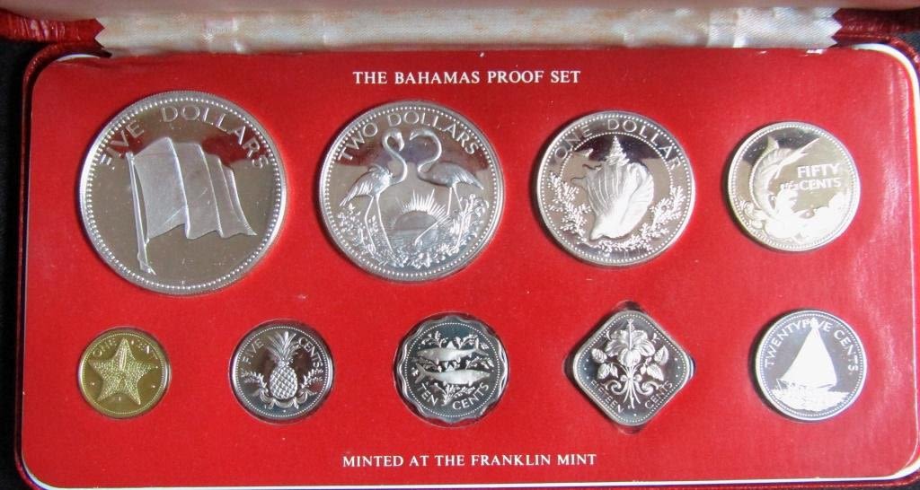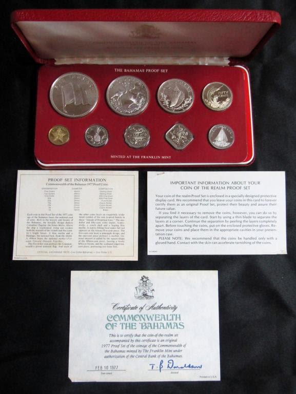 ORIGINAL CASE / PAPERS – $5 & $2 STERLING COINS; $1 & 50c .800 SILVER COINS