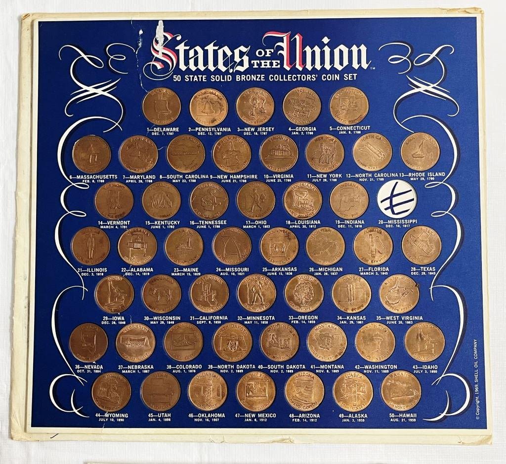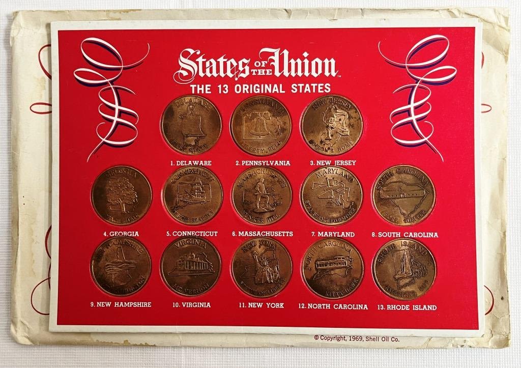 Collectors Coin Set 1969 Shell Oil (MISSING 2 COINS) – PLUS States of the Union ‘The Original 13 States’;