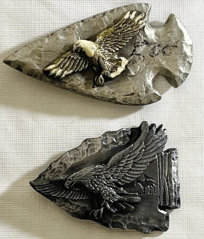 Set of Two Arrowhead with Eagle motiff Belt Buckles