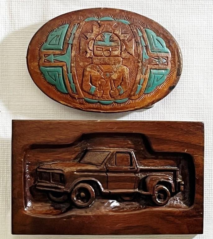 Carved Pick-up Truck and Carved Southwestern Style Belt Buckles