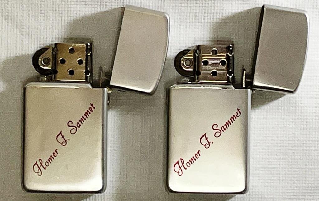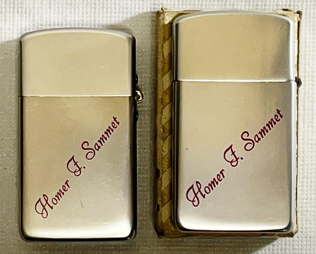 (2) Silver tone Lighters, Marked PARK Lighter on bottom, Has "Homer F. Sammet" on front. (1) Comes in box