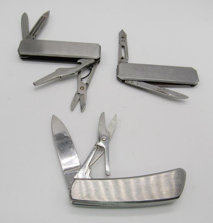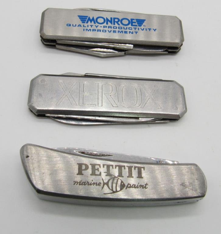 THREE SMALL ASSORTED BRANDED POCKET KNIVES, 2" BLADES