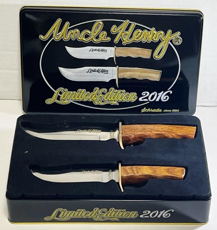 2 Knives Wood Handle in Limited Commemorative Tin