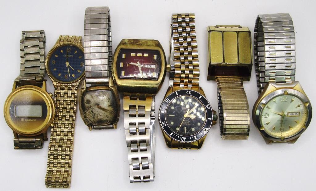 BULOVA-TIMEBAND-HAMILTON SELF WINDING DAY DATE-GENEVA-WR DAY DATE-DIGITAL-ALL WATCHES UNTESTED/PARTS/REPAIR