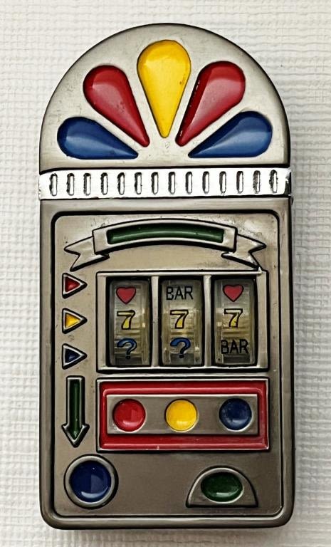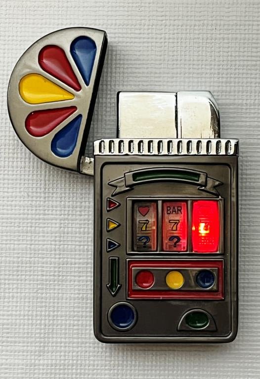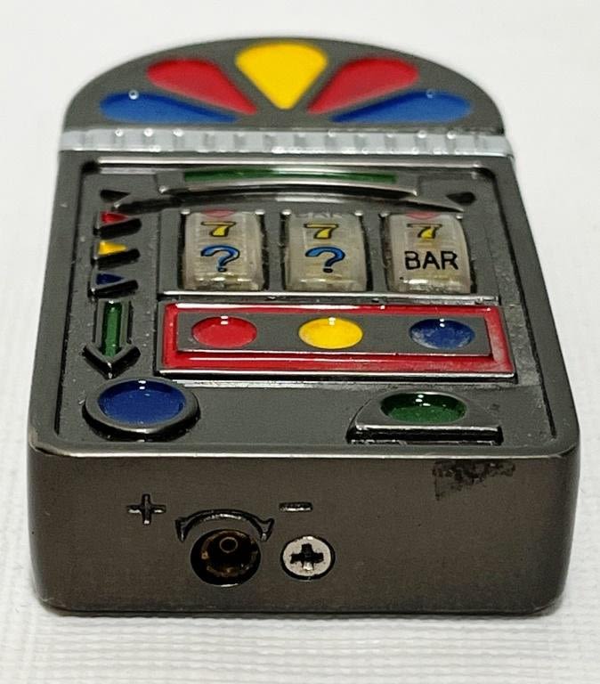 Casino slot machine theme. Lights up when lid is open. Marked ‘NUGGET’ on top.