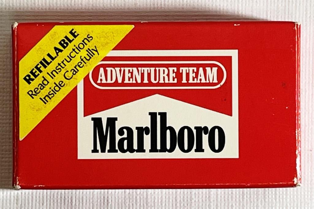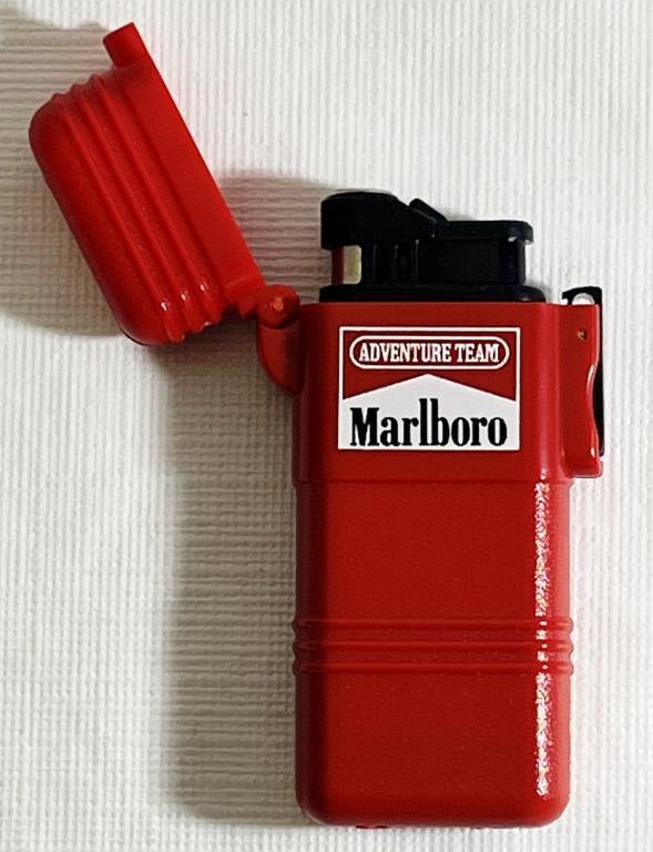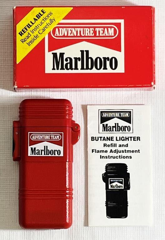 Vintage Marlboro Adventure Team Red Lighter in box and with lighter instructions.