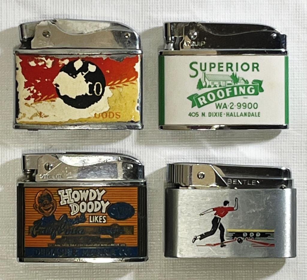 (1) Bentley Brand with Bowling Logo, (1) Robin Brand with Pomco Logo, (1) Satel Lite Brand with "Howdy Doody Likes" Advertisment, (1) Adquip Brand with Superior Roofing Advertisment