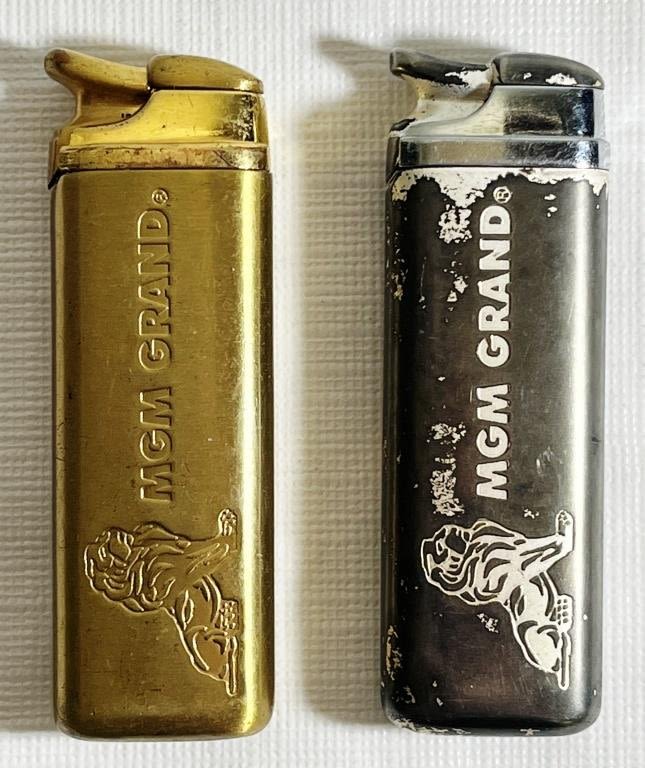 (1) Gold tone MGM Grand Hotel and Casino Advetising Lighter. (1) Silver tone MGM Grand Hotel and Casino Lighter.