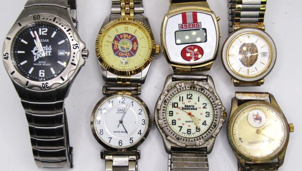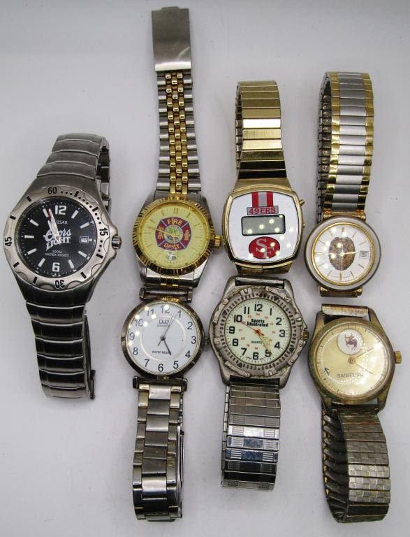 49ERS-FIRST DEP-SPORTS ILLISTRATED-POLICE-COORS LIGHT & OTHERS-ALL WATCHES UNTESTED/PARTS/REPAIR