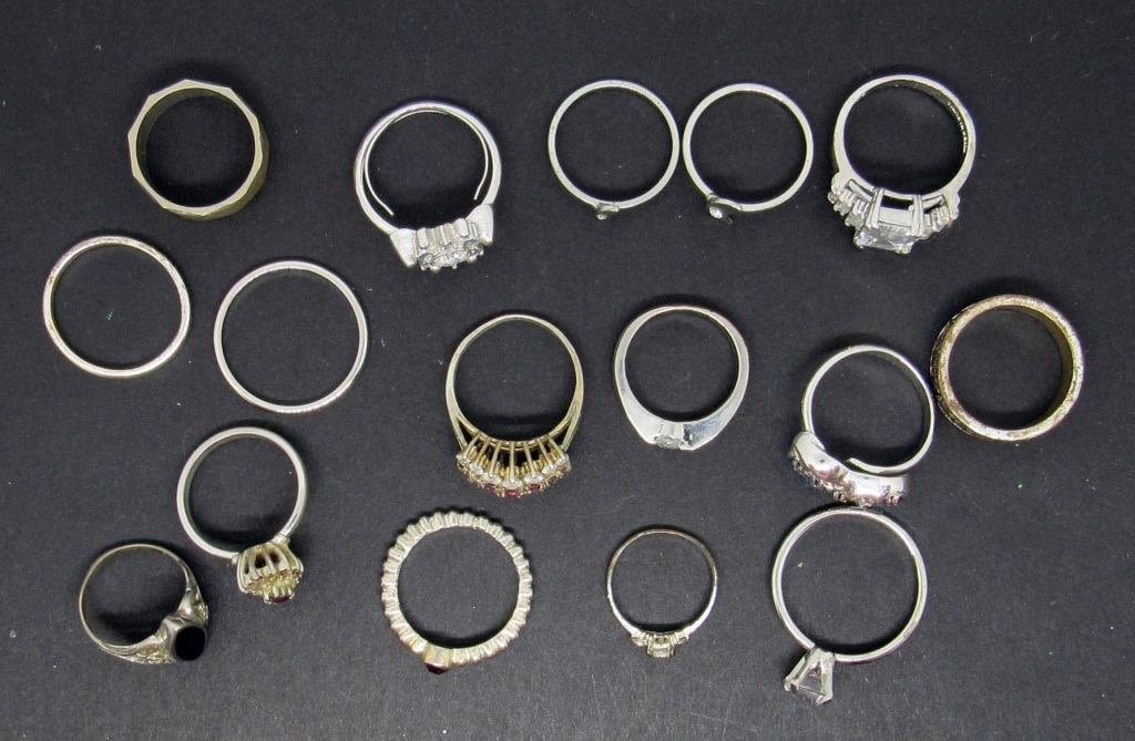 (16) MISC SILVER TONED RINGS