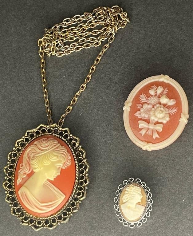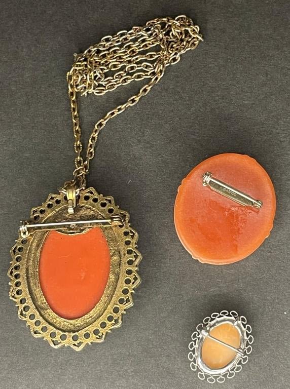 TWO BROOCHES, ONE MARKED AVON, ONE NECKLACE