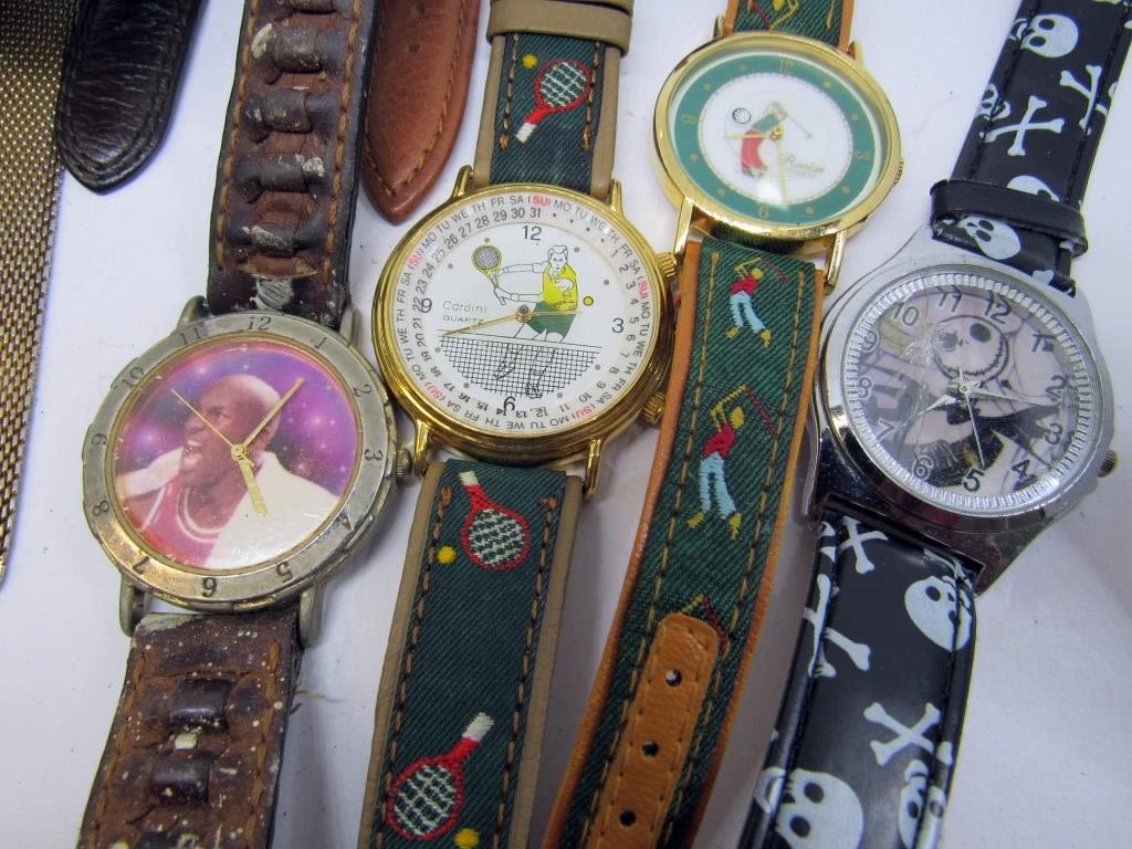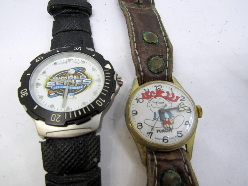 TUNA-MICHAEL JORDAN-PUNCHY-WORLD SERIES-INDIANS-BROWNS-GOLF-NIGHTMARE BEFORE CHRISTMAS-DISNEY 35TH ANNIVERSARY & OTHERS-ALL WATCHES UNTESTED/PARTS/REPAIR
