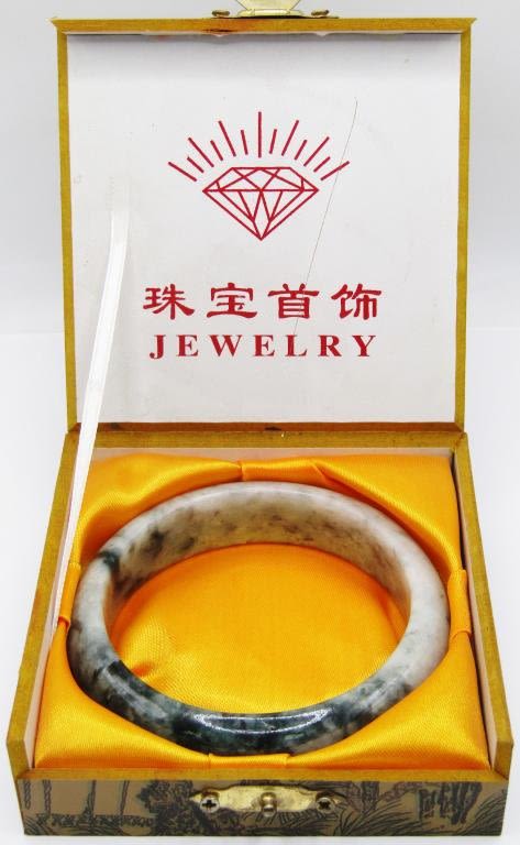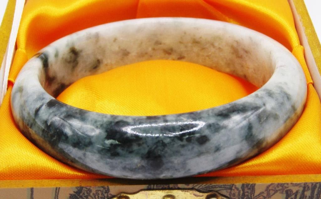 LARGE CHUNKY BLACK & GRAY STONE BANGLE IN BOX